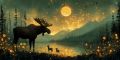 Majestic Moose and Calf in a Dreamy Sunset Landscape