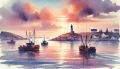 Sunset Hues over Halifax: A Watercolor Panorama of Maritime Calm