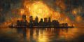 Fiery Sunset Over Halifax: A Vivid Maritime Vista on Canvas