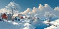 Colorful Winter Charm in Halifax: Snow-Covered Village Scene
