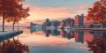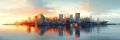 Golden Hour Glow over Halifax Skyline and Reflection in Water