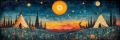 Enchanting Sunrise Over the Plains with Teepees and Wildlife