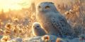 Golden Shadows: A Majestic Owl and Chick in a Mystic Cityscape