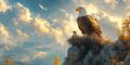 Majestic Eagles Nesting on a Cliff at Sunrise