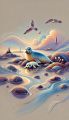 Eastern Passage: Minimalist Art Portrayal of Atlantic Puffins in Halifax