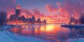 Vibrant Sunrise Over Halifax: A Stylized Canvas Wall Art