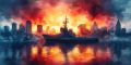 Vivid Sunset Over Halifax: A Mysterious Naval Silhouette on Fiery Waters