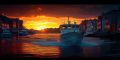 Serene Sunset Over Halifax: A Stylized Oceanic Cityscape Canvas