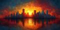 Surreal Sunset Over the City: A Vibrant Urban Dreamscape