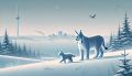 Mystical Winter Walk: A Lynx and Kitten Amidst Snowy Totems