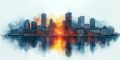 Serene Dusk Over Halifax: A Stylized Skyline and Waterfront Reflection