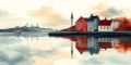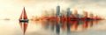 Vibrant Watercolor Sunset Over Halifax's Skyline Reflecting in Water