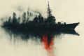 Mysterious Silhouette of a Warship in a Foggy Urban Harbor