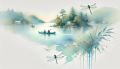 Serene River Curves Through a Mystical Forest with Soaring Birds