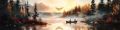 Autumn Serenity: A Lone Wooden Boat on a Misty Canadian Lake