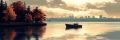 Serene Halifax Morning: A Boat on Calm Waters with Autumn Trees
