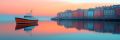 Surreal Dawn at Halifax Waterfront with Tranquil Waters and Colorful Houses