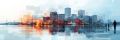 Vibrant Watercolor Reflections of Halifax's Iconic Skyline