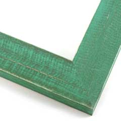 This simple, flat faced frame features real, solid wood with a rich, green-blue wash. The natural grain shows through the sanded varnish, giving the frame a soft, antiqued appearance with a pop of color.
