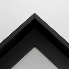 This extra tall, L-shaped floating contemporary canvas floater frame in black features a thin flat face.
